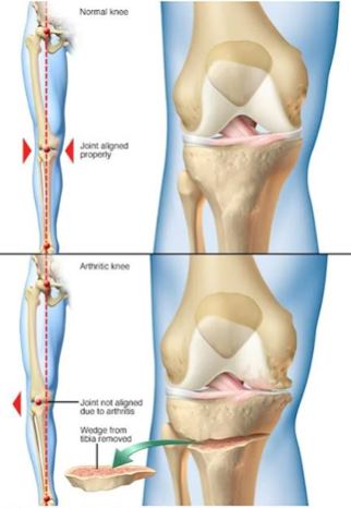 Knee osteotomy is a surgical procedure that involves cutting and realigning the bones in the knee to relieve pressure on a damaged area and improve function. It may be recommended for people with knee osteoarthritis or other conditions that cause uneven weight distribution in the joint.